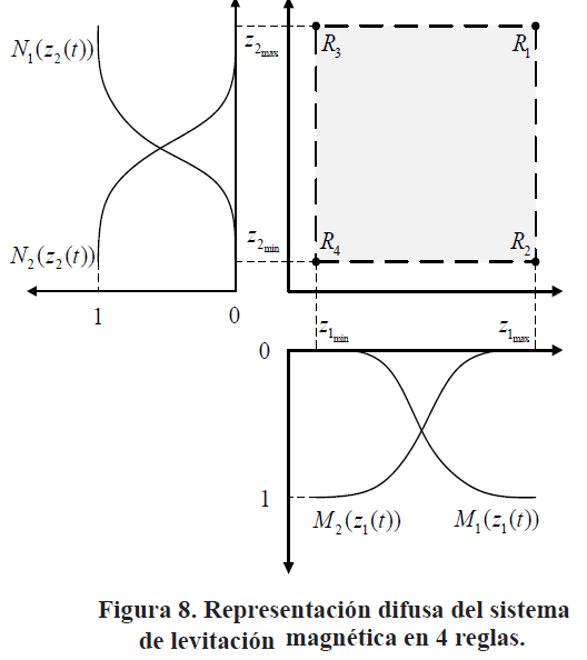 donde Mi (z1(t)) y Ni (z2(t))son las funciones de membresía, la cual corresponde a la función sigmoidal, Fig. 8:
