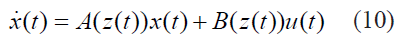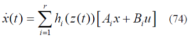 El modelo difuso continuo TSK puede ser también considerado como un "sistema cuasilineal" [10], esto es un sistema lineal politópico en x(t) y u(t) donde las matrices A,B,C,D varían de acuerdo: