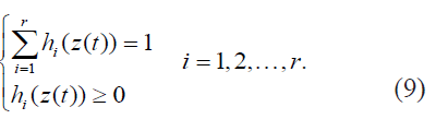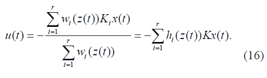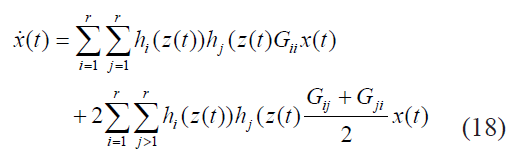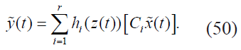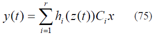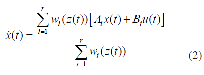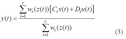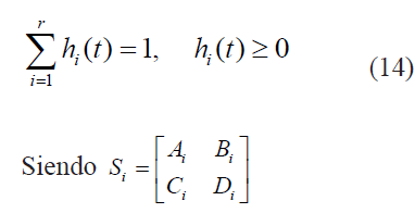 De este modo el sistema en espacio de estado pueden ser representados como un modelo Takagi-Sugeno- Kang [17], dados en (6) y (7), esto es una combinación lineal convexa de sub-modelos locales: