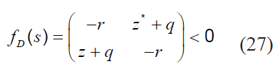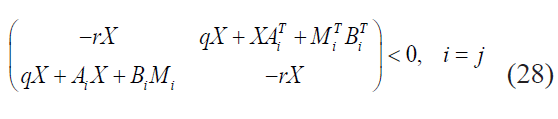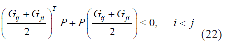 Las desigualdades (21) y (22) presentan multiplicación de las variables P y Ki , lo que indica que son no lineales. Por tal motivo, con el fin de reescribir la condición de forma lineal, se multiplica a ambos lados de cada desigualdad por P-1 y se define una nueva variable X= P-1 , de tal manera que puede ser reescrito de la forma (34) y (35).