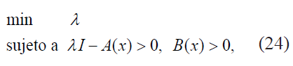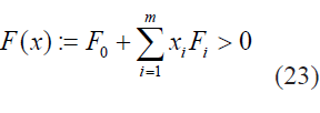 donde x= [x1 x2 . .. xm ]T ∈ ℝn es la variable de interés o de optimización, Fi = FiT ∈ ℝ nxn, i= 1, m, son matrices dadas. La desigualdad " >0 " es la validación para obtener una definición positiva, esto equivale a que los valores propios de F(x) sean positivos.