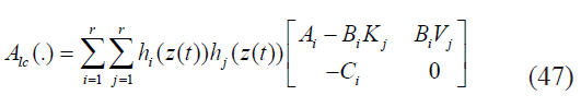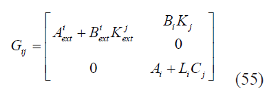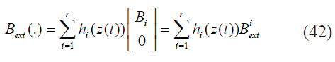 Ahora para el diseño del compensador TSK mediante LMI, consiste entonces en obtener un controlador Ki ext que satisfaga las restricciones (28),(29) , (36), (37) y un observador Li que cumpla con las restricciones (53) y (54). Siendo Ki ext = MiX-1 y Li = P-1 Ni.