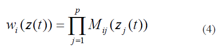 Mij (zj (t)) representa el grado de membresía de zj (t) en Mij . Sin embargo, en (2) y en (3) podemos simplificar y obtener que: