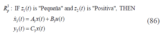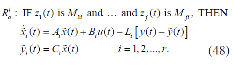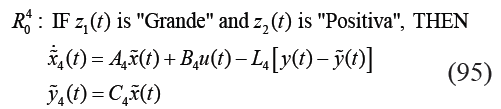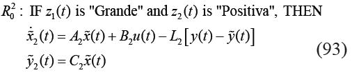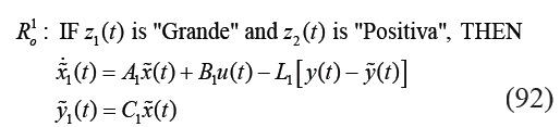 En el diseño del observador difuso se definen el conjunto de sub-modelos locales difusos de acuerdo a (48), donde se comparten los mismos antecedentes del modelo difuso T-S para la elaboración de cada regla, esto es:
