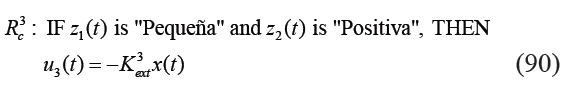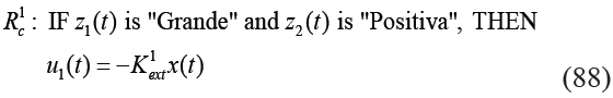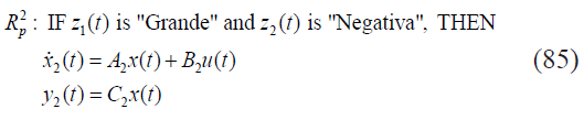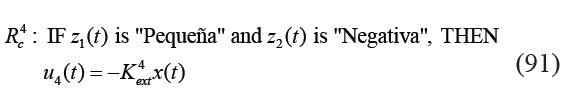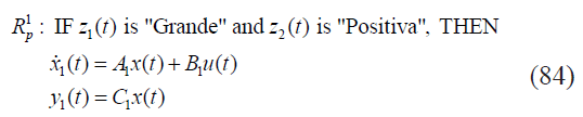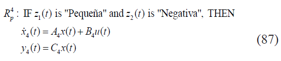 Cada función de membresía se puede nombrar como "Grande", "Pequeña", "Positiva" y "Negativa", respectivamente. El sistema no lineal puede ser representado mediante el siguiente modelo difuso: