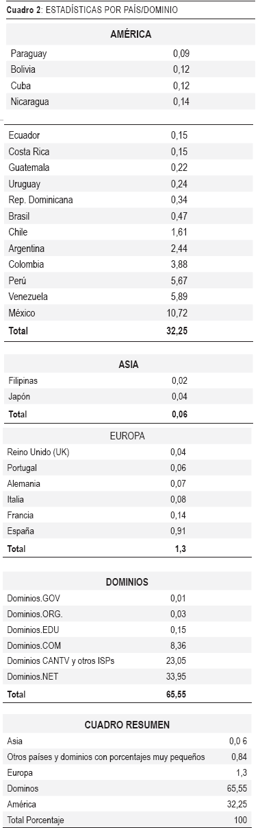 II. Estadísticas de consultas por país/dominio al servidor donde se aloja EDUCERE, la revista venezolana de educación, durante el año 2006.