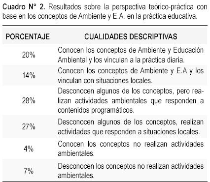 - La práctica educativa en materia de E.A está desvinculada de la teoría, dado que generalmente los docentes no utilizan el contexto inmediato como recurso de aprendizaje.