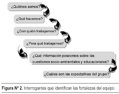 Objetivo: Identificar las características del grupo en función de la visión compartida y los niveles de conocimiento sobre el entorno. Su contextualización desde la práctica del participante permitirá identificar elementos comunes y no comunes en la visión institucional, así como en los enfoques conceptuales sobre las problemáticas socio-ambientales y educacionales de sus miembros.