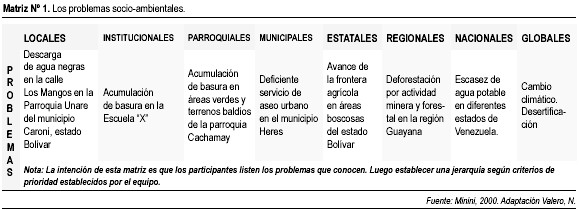 - Instrucciones: Analiza los diferentes problemas socioambientales que conoces, es importante definir en una oración concreta y precisa el problema y el contexto del mismo. De esta precisión depende el ámbito de contextualización en los niveles señalados en la Matriz N° 1.