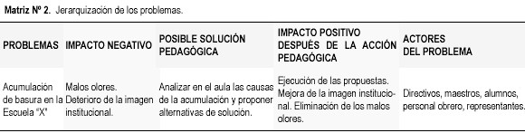 - Instrucciones: Utilizando criterios de prioridad e interés selecciona tres problemas y analiza los aspectos señalados en la matriz N° 2.