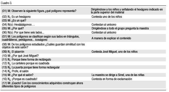 Durante el desarrollo de la estrategia, el intercambio oral que se produjo entre la maestra y los niños dio origen a la interacción transcrita en el cuadro 3.