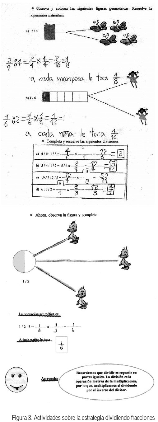 En el desarrollo de esta estrategia Dividiendo fracciones es importante resaltar la vinculación de los conocimientos previos de los niños con el contenido matemático y el trabajo en equipo. La actitud asumida por la maestra durante toda la actividad, fue de mediadora y facilitadora de experiencias de aprendizaje, coordinando las acciones y mostrándose como una guía frente al grupo de niños; de tal manera, que se promovió la participación espontánea de los niños y su deseo intrínseco de aprender.