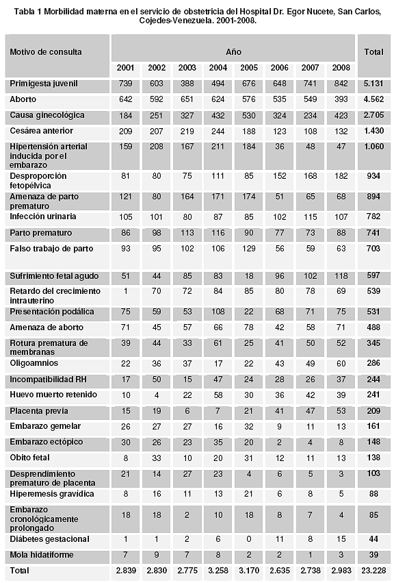Maternal morbidity and mortality in San Carlos, Cojedes-Venezuela. 2001-2008.