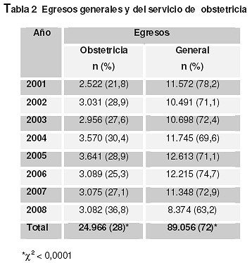 En total, 23.228 pacientes consultaron al servicio de obstetricia del Hospital Dr. Egor Nucete, en busca de atención médica entre 2001 y 2008, valor absoluto que representa 28% de todos los egresos hospitalarios de la mencionada dependencia dispensadora de salud (Tabla 1),