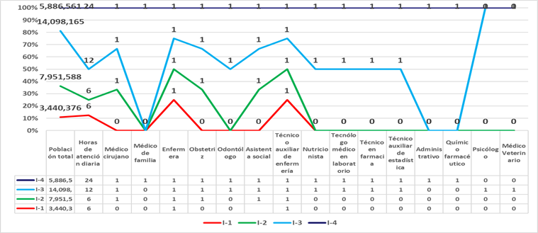 La proporción de población asignada al PNAS excede la capacidad de personal médico y profesionales técnicos de salud establecida por el Ministerio de Salud (MINSA, 2023b). Esta disparidad sugiere la existencia de desafíos en la prestación de servicios en el PNAS debido a la alta demanda poblacional y las limitaciones presupuestarias. Los problemas en la atención primaria de salud afectan la calidad y accesibilidad de los servicios, y la falta de médicos especializados en salud familiar y comunitaria refleja la falta de interés en mejorar el PNAS. Esto tiene un impacto negativo en los individuos y su capacidad para recibir una atención completa, continua y humana a pesar que la normativa peruana establece que los establecimientos de salud categoría I-4 deben de tener asignados medicos especialistas en medicina familiar y comunitaria (Villanueva et al., 2020).