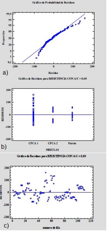 De igual forma se procede para el tratamiento CPCA1 para (%P) con a/c = 0,60 y con conclusiones similares (ver Tabla 36 y 37).