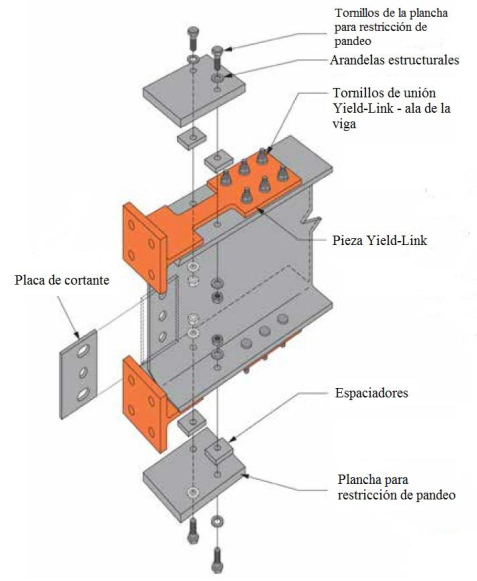 Las conexiones de las piezas T-stub modificada, las cuales se unen mediante pernos a las alas de la viga y de la columna, están configuradas como uniones cedentes y contienen un área reducida de cedencia en su alma cuyo pandeo local a compresión se evita mediante la instalación de planchas para restricción de pandeo. La conexión está basada en el enfoque de diseño por capacidad, donde la respuesta de la conexión se mantiene dentro del rango elástico bajo la combinación de cargas factorizadas, y la demanda de rotación inelástica sísmica está confinada predominantemente dentro de la conexión, con poco o nulo comportamiento inelástico esperado en las vigas y columnas (4).