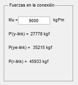 En la parte inferior derecha de este panel se encuentra el botón “Chequear la conexión”. Al hacer clic sobre éste, se abre una ventana auxiliar que muestra el chequeo de cada uno de los estados límite que se deben estudiar en esta parte de la conexión. Es necesario pulsar este botón para poder habilitar los componentes del panel inferior, esto para ayudar al usuario a ingresar los datos en el orden adecuado. Si la conexión no tiene la resistencia requerida para alguno de los casos de falla, se puede cerrar la interfaz auxiliar, modificar los datos ingresados según sea necesario y volver a pulsar el botón para revisar los nuevos valores calculados.
