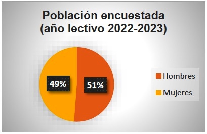 La representación circular presenta que del total de 209 estudiantes de séptimo y décimo grado de Educación General Básica que participaron en la investigación, el 51% corresponde a mujeres, lo que equivale a 107 estudiantes, mientras que el 49% corresponde a hombres, representando a 102 estudiantes.