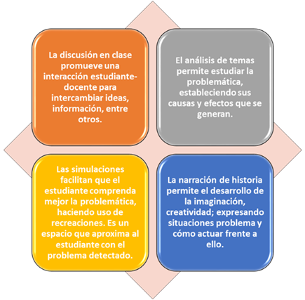 En este mismo orden de ideas, la UNESCO (2012) considera que, a partir del estudio de la problemática ambiental en el entorno, se realiza un análisis que contribuya a la formación del pensamiento crítico, así como valores de conservación ambiental. Las estrategias se muestran en la figura 1.
