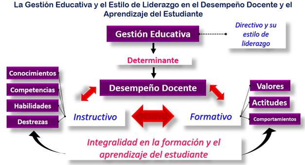 De allí que, las instituciones educativas deben estar gestionadas por directivos docentes que las encaminen al logro de metas y objetivos pedagógicos y educativos. Es decir, sus directivos deben ser líderes con alta influencia, que inspiren y movilicen los procesos de la comunidad escolar en relación al aspecto educativo. Siendo así, se parte del supuesto de que el directivo y su modelo para liderizar la gestión educativa, es una influencia esencial en el desempeño del docente, lo cual, de manera proporcional, coadyuva al desarrollo del proceso de aprendizaje de los estudiantes. Desde esta óptica, el presente artículo tiene como propósito desplegar procesos de comprensión en torno a la gestión educativa, para el desempeño docente y el aprendizaje en estudiantes.