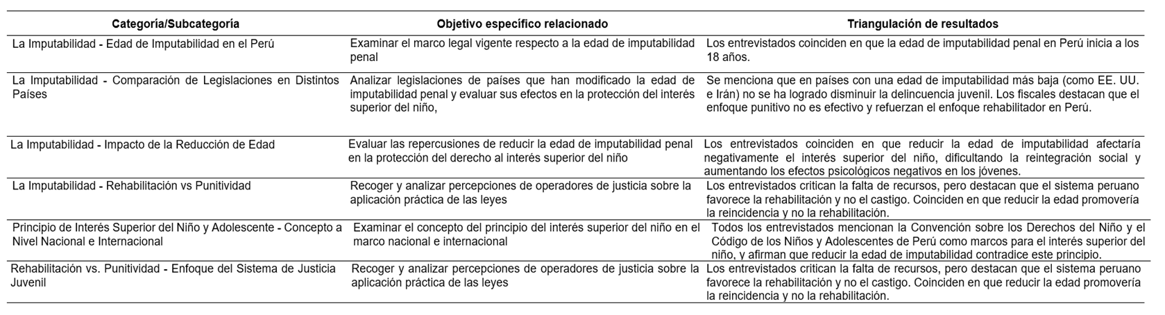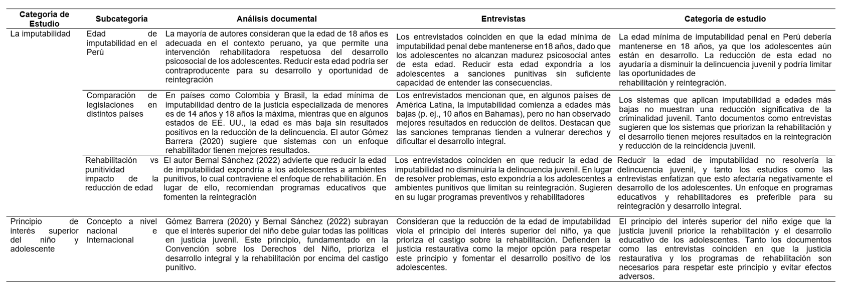 Los resultados muestran que la reducción de la edad de imputabilidad penal es una medida regresiva que contraviene el principio del interés superior del niño. A nivel internacional, sistemas que priorizan la rehabilitación y la educación, han demostrado ser más efectivos para garantizar la reinserción social y prevenir la reincidencia. En contraste, enfoques punitivos generan efectos adversos, incluyendo la estigmatización y la exclusión social de los adolescentes.