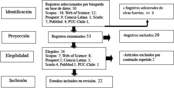 Se evaluaron 51 artículos de bases bibliográficas como Scopus, Web of Science, Scielo, Proquest, Pubmed, Ciencia Latina y repositorios. Por consiguiente, se utilizó el descriptor DeCS con términos de PSB, caries dental, edentulismo, y periodontitis, de tal modo se emplearon los operadores booleanos “AND”, “OR”, y “NOT”, desde del 2020 al 2024 (5 años). En la revisión bibliográfica se seleccionó según la relevancia y años de antigüedad; en consecuencia, fueron determinantes 22 artículos, aplicando el análisis documental.