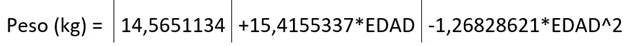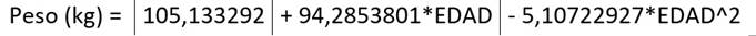 Sustituyendo la edad óptima en la función original para encontrar el peso:
