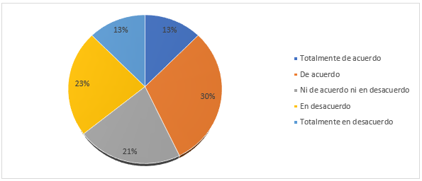 | Ni de acuerdo ni en desacuerdo | 19 | 33,93 % |