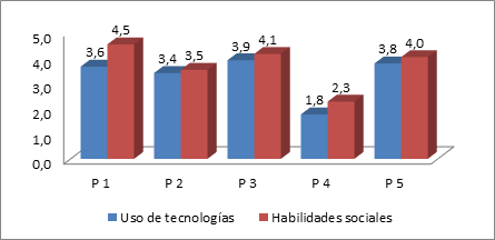 Figura 1 Medias de las habilidades sociales y del uso de tecnologías.