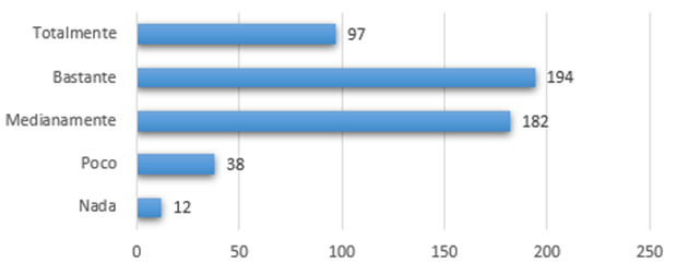 Otro de los elementos evaluados fue la percepción en cuanto a la confiabilidad, tal como se muestra en la figura 2. En este caso el 55.6% de los profesores consideró a ChatGPT bastante o totalmente confiable y un 34,8% lo valoró como medianamente. Esto indica una orientación favorable hacia su utilización en el contexto universitario, aunque con un enfoque prudente que implica la comprobación crítica y reflexiva de los contenidos. Solo el 9.6% considera que la herramienta de IA es poco o nada confiable.