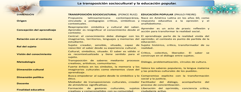 Figura 2. Comparativa entre Transposición sociocultural y Educación Popular.
