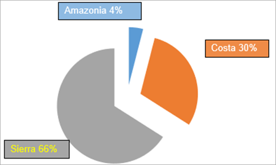 En la sierra ecuatoriana es donde más se ha desarrollado la apicultura, con mayor número de apicultores y cantidad de colmenas. En Ecuador existen cerca de 17.000 colmenas, de las cuales el 66% se encuentra en la región Sierra, 30% en el litoral y el 4% restante en la Amazonia (Figura 1).
