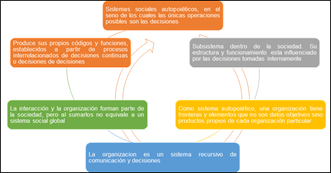 La TGSS de Niklas Luhmann; como fundamento teórico para comprender la evolución, naturaleza, estructura y mecanismos de funcionamiento de las organizaciones que se desenvuelven en un contexto de mercados globalizados caracterizados por elevada competitividad, gran dinamismo e incertidumbre, tal postura se sustenta en la premisa que concibe las organizaciones como sistemas sociales con autonomía propia, capacidad de decisión y autorregulación, considerando el principio de autopoiesis; esto se traduce en que las organizaciones no se configuran como sistemas dependientes de las interrelaciones con el entorno social que las rodea, aun cuando son sistemas dependientes de sus propias determinaciones o decisiones, incluyendo las que consideran la información del entorno, bajo esta perspectiva, los supuestos que consideran las organizaciones como sistemas abiertos, cuyas operaciones se orientan por su adaptabilidad al entorno, resultan insuficientes para explicar su funcionamiento en la actualidad (Luhmann, 1997; 2006).