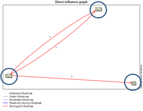En función de la Figura antes reflejada, se pudieron extraer las siguientes conclusiones: Las variables que presentan mayor influencia y deben ser abordadas para cambiar la situación existente son: Evaluación del Programa, Debilidades del uso de las TICs y Amenazas del uso de las TICs.