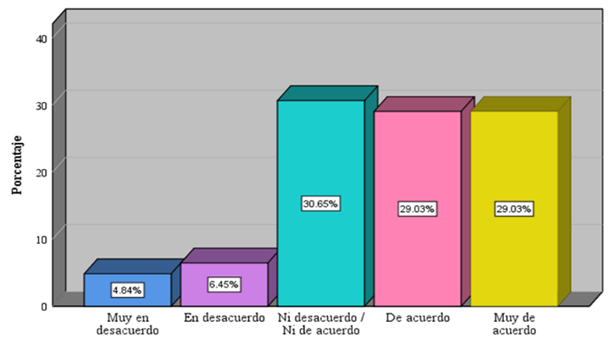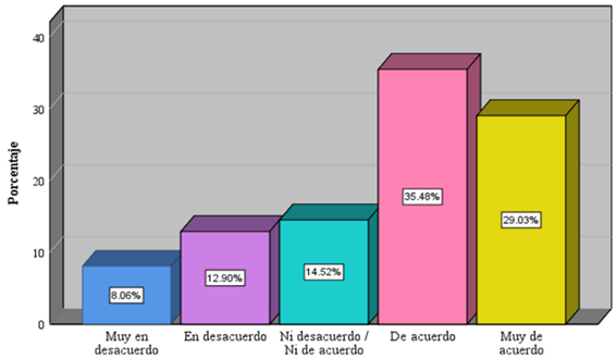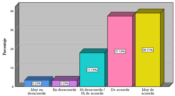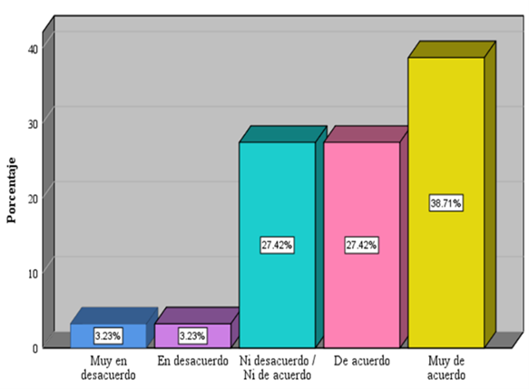 | Muy de acuerdo | 24 | 38,7 | |