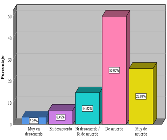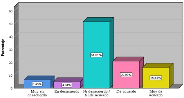 | Muy de acuerdo | 10 | 16,1 | |