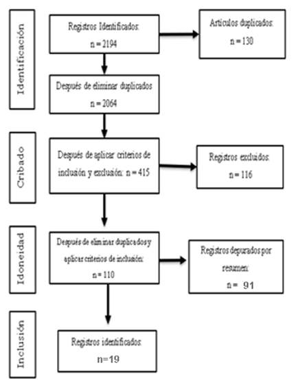 El proceso de búsqueda estructurada fue implementado en los principales motores de búsqueda académica: Scopus, SciELO y Web of Science, se consideraron expresiones clave como "primer nivel de atención en salud", "políticas públicas" y "atención primaria", limitando exploración a investigaciones publicadas tomando como referencia los últimos diez años, se efectuó la selección de estudios en dos etapas diferenciadas, primero se revisaron los títulos y sinopsis de los documentos seleccionados, y posteriormente se llevó a cabo la evaluación completa de los textos seleccionados. Los procesos de condiciones de elegibilidad y descarte fueron documentados siguiendo el diagrama de flujo propuesto por PRISMA.