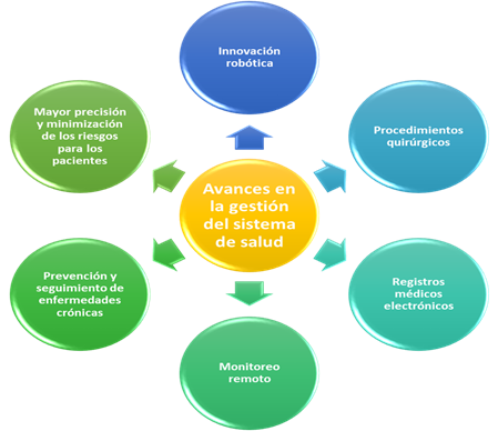 En este orden de ideas, la robótica y la realidad aumentada han transformado los procedimientos quirúrgicos, lo que ha mejorado la precisión y ha reducido los peligros para los pacientes. Por otro lado, la prevención y el seguimiento de enfermedades crónicas han mejorado gracias al monitoreo de la salud de los pacientes a través de dispositivos portátiles e internet de las cosas.