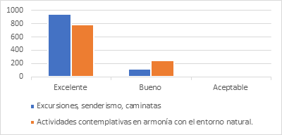Figura 3 Percepción de turistas sobre las excursiones, senderismo, caminatas y las actividades contemplativas en armonía con el entorno natural.