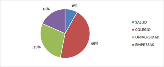 De los 50 artículos revisados, el 45% aplicó las técnicas de NLP en Colegios, el 29% en universidad, 18% empresas y el 8% en salud; lo que indica que, si bien la neurolingüística es para una amplitud de áreas, la educación es un sector en alza que busca incluir nuevas técnicas de aprendizaje integral.