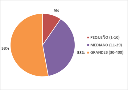 El 53% de los grupos que fueron parte de los estudios realizados fueron grandes (30 a 300), el 38% fueron grupos medianos (11 a 29) y el 9% fueron grupos pequeños; en algunos casos hubo dos grupos de testeo entre medianos y grandes que conformaron parte del grupo de profesores y de estudiantes cuando las investigaciones eran realizadas en colegios. La preferencia por grupos grandes refleja mejor las condiciones naturales, especialmente si se trata de Institutos de Educación Superior o centros educativos.