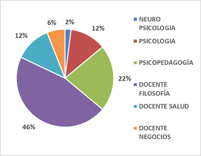 De los 50 artículos, los docentes de Filosofía y letras representaron el 46% de los investigadores que encabezaron estudios sobre el uso de técnicas de programación neurolingüística, seguidos por expertos en Psicopedagogía con 22%, expertos en Psicología con 12%, docentes en áreas de salud con 12%, docentes de Negocios con 6% y expertos en neuro psicología con 2%; este resultado estableció una conexión con las áreas en las que existe un aumento de investigación de las técnicas neurolingüísticas, refiriéndose al sector educacional que combina varios niveles de educación.