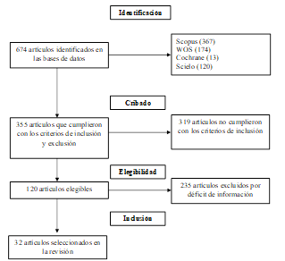 Se establecieron criterios de inclusión y exclusión clave para la fase de selección, con el fin de identificar los artículos más relevantes y significativos para el estudio. Los criterios de inclusión abarcaron el idioma, año de publicación, accesibilidad, tipo de estudio y coincidencia con palabras clave. Los criterios de exclusión se definieron en función del alcance limitado del artículo, la omisión de aspectos clave y el incumplimiento de los criterios de inclusión. La estrategia detallada de búsqueda y selección de artículos se muestra en la tabla 1.