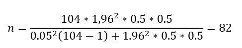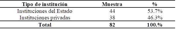 De los cálculos realizados se obtuvo una muestra representativa para el estudio de 82 directivos o gerentes de las instituciones públicas o privadas de la región de Lima, 2023.