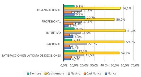 Figura 3 Variable satisfacción en la toma de decisiones y sus dimensiones