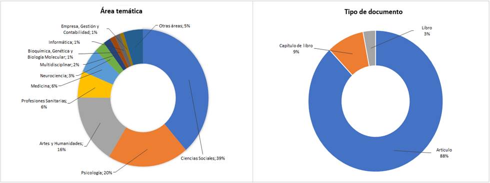 Figura 3 Publicación de documentos por área temática y tipo