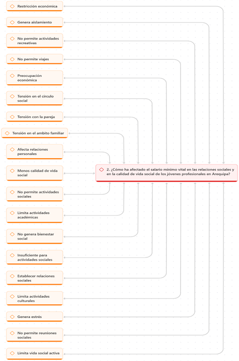 En relación con la segunda pregunta, sobre cómo la RMV afecta el ámbito social, las respuestas indicaron que los jóvenes profesionales enfrentan restricciones económicas que generan en ellos un cierto aislamiento. Esta situación les impide participar en actividades recreativas y viajar, ya que la preocupación constante por su situación financiera limita sus posibilidades.