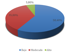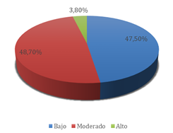 Por otro lado, la figura 2 muestra que la mayoría de los estudiantes (66,2 %) se encuentra en un nivel bajo de participación activa. Esta situación refleja una implicación individual limitada dentro de las dinámicas colectivas, lo cual puede influir negativamente tanto en la calidad del aprendizaje como en la cohesión del grupo. Por ello, resulta fundamental implementar estrategias que incentiven una participación más comprometida y constante.