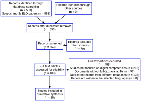 Este artículo de investigación corresponde a una revisión sistemática de literatura científica, basada en el análisis y síntesis de los resultados más relevantes relacionados con las competencias digitales aplicadas a la educación docente. Para ello, se utilizó el método PRISMA (Preferred Reporting Items for Systematic Reviews and Meta-Analyses), con el objetivo de asegurar una revisión exhaustiva y productiva (Barrios et al., 2021).